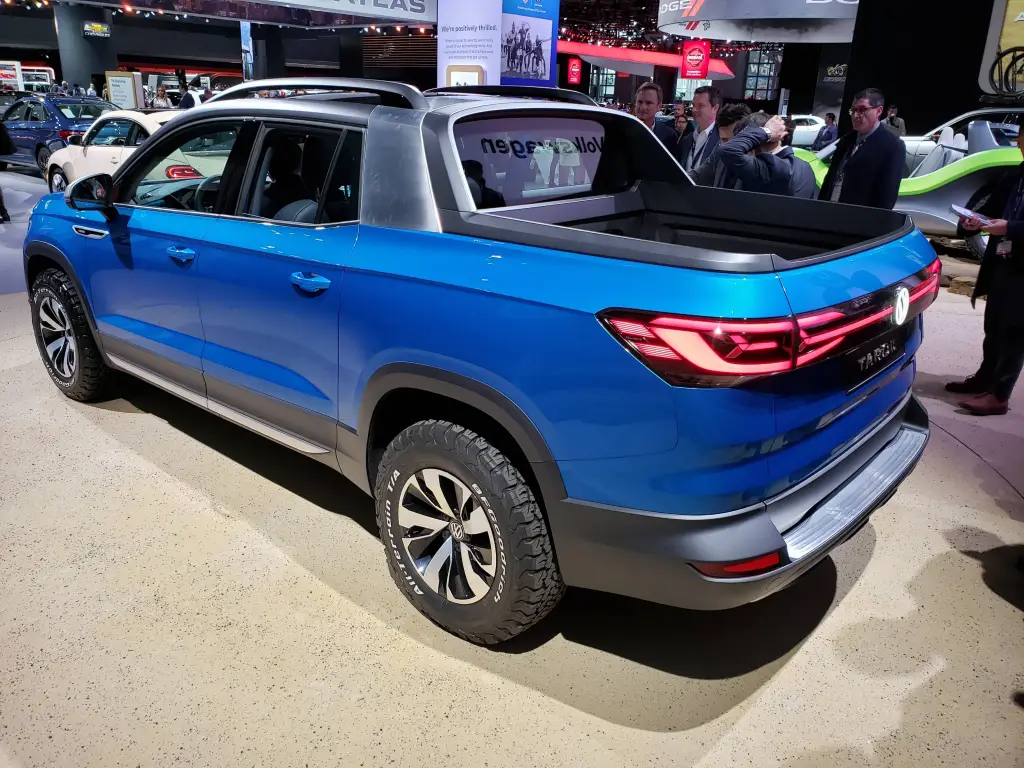 O projeto nasceu como evolução do conceito Tarok, apresentado ao público em 2018 no Salão do Automóvel de São Paulo. Na época, a ideia priorizava suspensão traseira independente e tração integral, mas o perfil do segmento mudou e a Volkswagen adaptou o foco para um produto mais competitivo e adequado às necessidades brasileiras, mirando diretamente rivais como Fiat Toro e Chevrolet Montana.